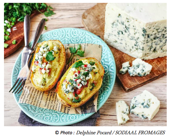 A la sortie du four, saupoudrer du reste de Roquefort préalablement émietté ou coupé en petits dés. Ajouter des herbes ciselées, du poivre rose écrasé, un filet d’huile d’olive. Servir.