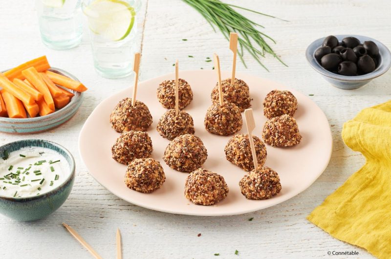 Terminer la recette en roulant les boulettes de rillettes dans le mélange de graines.