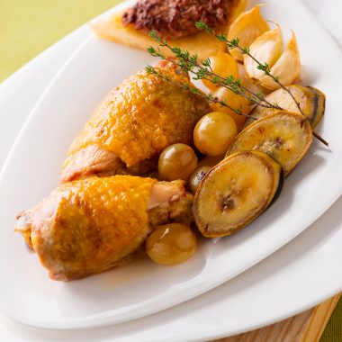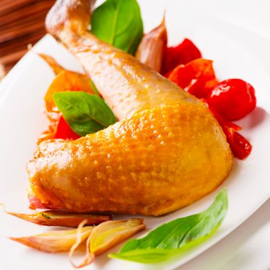 Cuisses de pintade aux tomates confites et basilic