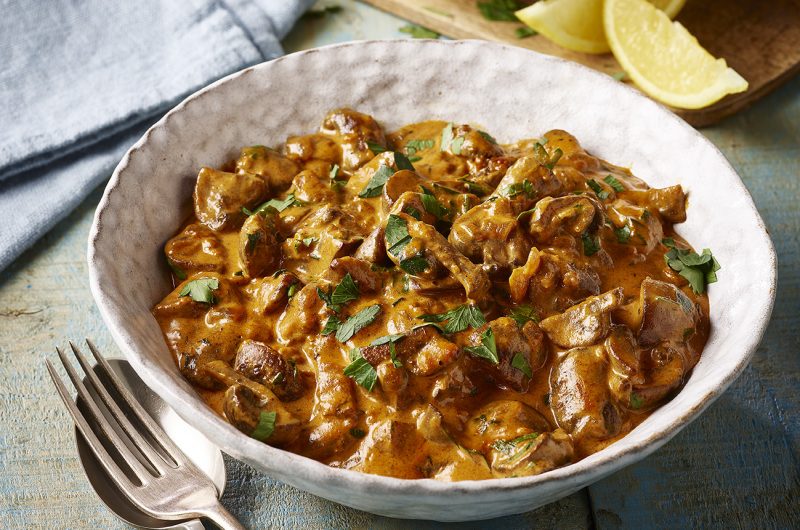 Étape 3 : ajouter l’ail, le thym, la poudre de poivron et le poivre de Cayenne et laisser cuire 2 minutes. Ajouter ensuite le bouillon et laisser mijoter 10 minutes. Ajouter la crème fraiche, la moutarde et la sauce soja aux champignons et poursuivre la cuisson encore 10 minutes.