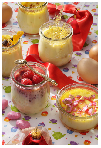 Concasser quelques pralines roses sur la surface des œufs au lait.