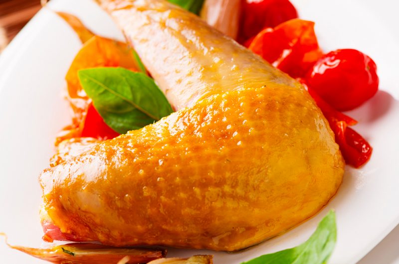 Saler, poivrer et mettre au four chaud (175°C) pendant 40 min. Retourner les cuisses en cours de cuisson.