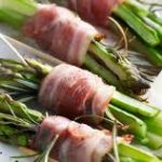 ➸Les rassembler en petits fagots de 5 asperges, entourer chaque fagot d’une lamelle de jambon. Les déposer dans un plat à four, les arroser de beurre fondu, poivrer.