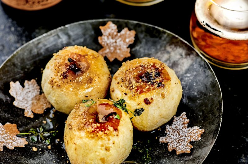 Mettre au four à 180°C environ 45 minutes en arrosant de beurre régulièrement. Sortir du four une fois les pommes cuites.