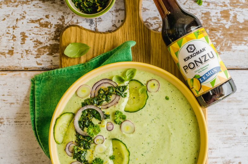 Cette recette de soupe froide aux légumes verts et au kéfir est servie froide, avec une bonne gremolata faite maison. Idéale lorsqu’il fait très chaud, elle convient même aux végétaliens.