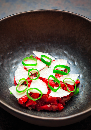 3) Déposer le tout en garniture, par dessus le tartare.