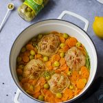 Instructions: Prepare vegetables: peel and slice the onions, peel the carrots and cut into thin slices. Set aside.Heat a drizzle of olive oil in a cast iron casserole and sear the veal paupiettes. Once golden on all sides, set aside on a plate. Add a little olive oil to the bottom of the casserole and sweat the sliced onions over low heat until translucent. Then add the carrots, then fry for about 10 minutes, stirring regularly. Meanwhile, remove the zest from the lemon and two oranges. Then squeeze their juice as well as that of the extra orange. Deglaze the cooking juices with the broth and wet at height with the citrus juices. Add bay leaves, rosemary, garlic powder, orange and lemon zest and veal paupiettes. Cook covered and over low heat for 25 to 30 minutes. Check the cooking and extend it if necessary. Before serving, add the green olives stuffed with the lemon pulp. Note: The finer the carrot slices, the faster the cooking. Idea: It is possible to accompany this dish of tagliatelle, in the spirit of an osso buco “in gremolata” (authentic, without tomato sauce)
